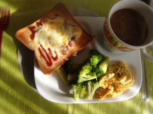 朝食ってのはよく陽の当たるところで食べたいもんですな。