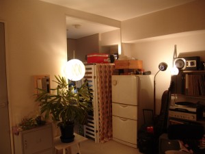 昨日までベッドサイドにあったフロアライトはこっちに移動。