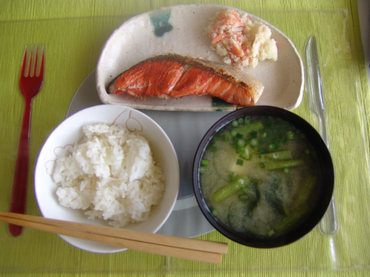 鮭焼き定食:鮭はフライパンで焼くとうまく焼ける。