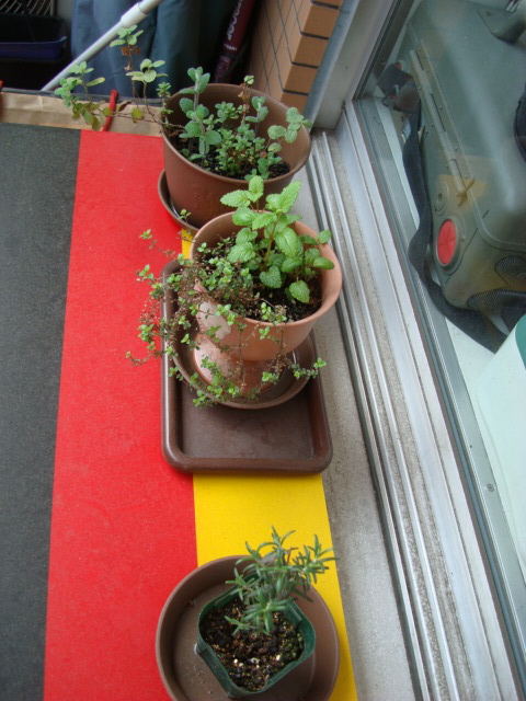 追記:ローズマリーは大きめの鉢に植え替えたほうがいいかも。でも時期が…。