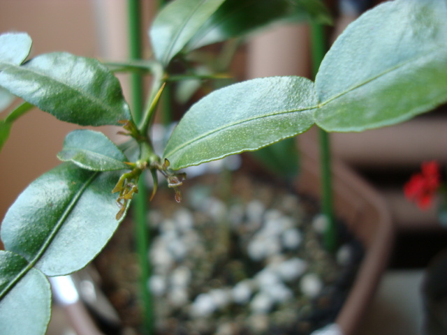こぶみかん様もこのようにエイリアン状の新芽が、四月に入ると同時に出始めました。