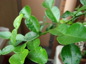 元祖こぶみかん様は虫くいに動じる事無くお元気です。なんか葉っぱが巨大化してきました。