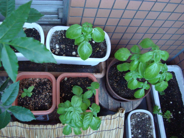 バジルは成長度合いがばらばら、スピード遅し。一応コンスタントに収穫はできている。