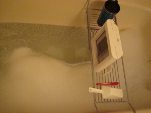 ずっと欲しかった風呂用本読みラック買いました。やっと1000円以下のを見つけた。