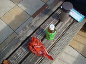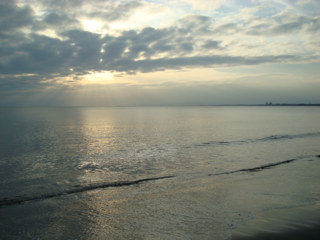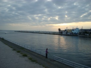 昼は海を見ながら、朝作ったおにぎり(明太子&梅)。今日昼間めちゃ暑かった