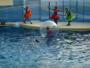 イルカショーは二種類観れた。これはシュールなおねいさんたちのミュージカル仕立てのショー
