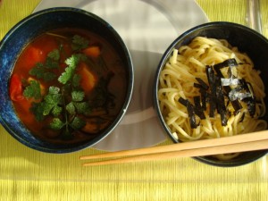 トマトつけめん。これはインスタントの麺とソースを使用。