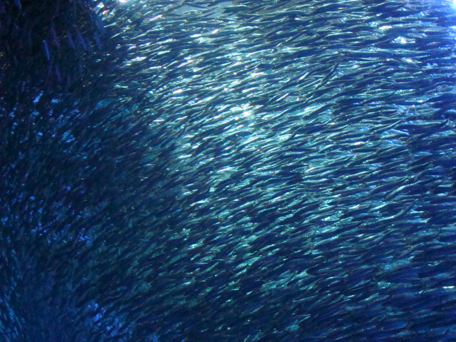 青魚の群れはほんとにきれいですよね〜。きらきら光って新鮮な感じで 見てるとお腹もすいてきます・・