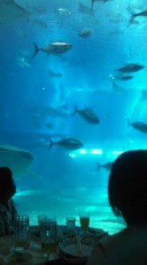 館内のフードコートは巨大水槽を見ながら食事(私の場合はビール)できるんですよ〜