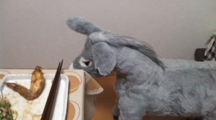 手羽先と一緒に写ってる 友達の新居にいたロバくん