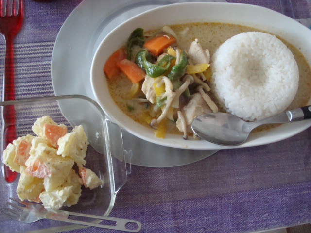 結局こうなる グリーンカレー。ココナツミルクが高騰してるので最近は使っていなかった、脂肪分高めのを久々使用・・・