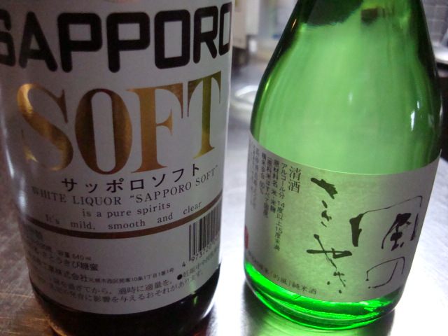 ↑酒。行ったときは定番のサッポロソフト(焼酎)。居酒屋で呑んではまった日本酒『風のささやき』。