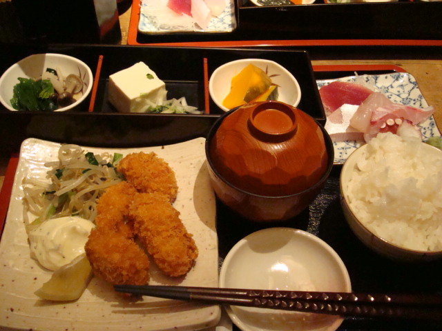 今日はカキフライ&ミニ刺身定食