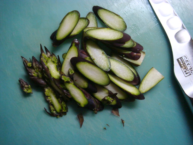 上の呑み会のお土産でいただいた紫アスパラ。なんと生のまま食べられる貴重なアスパラ。美味