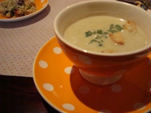 スープは何スープなのか…を飾らないかんじのキュートな店員さんが一生懸命説明してくれるのですが、聞き取れず・・・でもま、店の雰囲気からしてはずれはなさそうだったので、おまかせ! 『私のお母さんが作ったスープで、うんぬんかんぬんなの』って言ってたので、親子できりもりしているお店のようです。