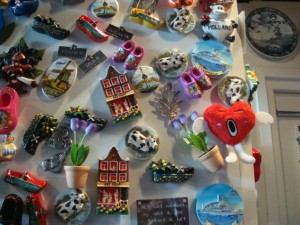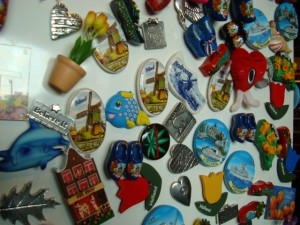 ↑柱いっぱいにくっつけられた立体マグネットの数々。オランダと全く関係なさそうなものをはじめ、飾り窓をかたどったものや葉っぱ頭の男に注目 笑