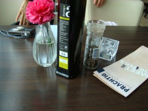 橋の見える開放的でおされ(隣にいやげもの屋があるとは思えない)なお店でお茶して待ちました。
