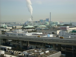 部屋の真正面に見える看板の向こう正面が造船所なのだから