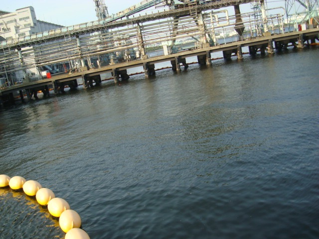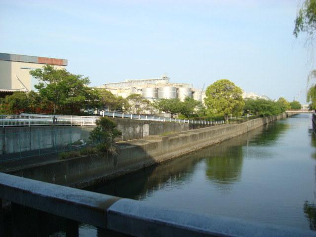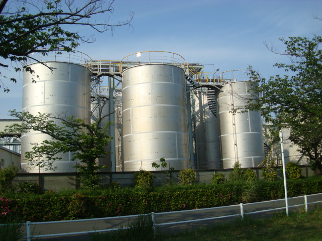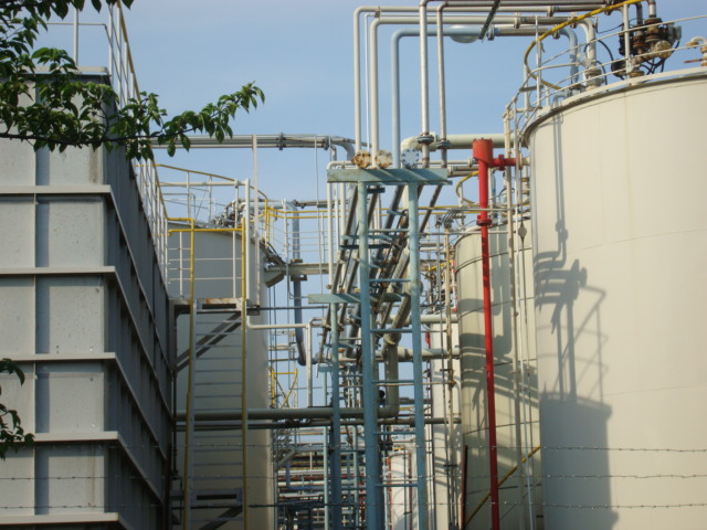 ナイスビューの予感・・・川とタンク群に挟まれた遊歩道をとりあえず進んでみる