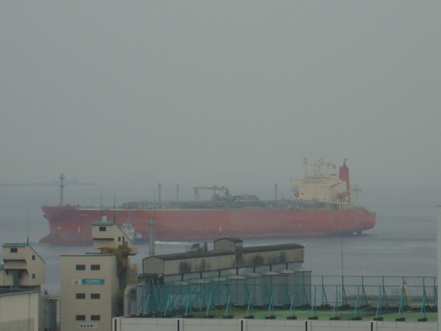 ちょっと珍しく赤い船が停泊していた。二泊するのかと思いきや