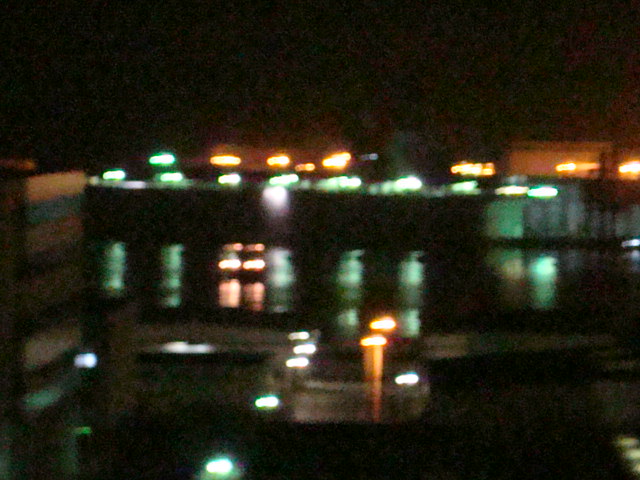 今夜は珍しく造船所の前にミニ船がとまっている。