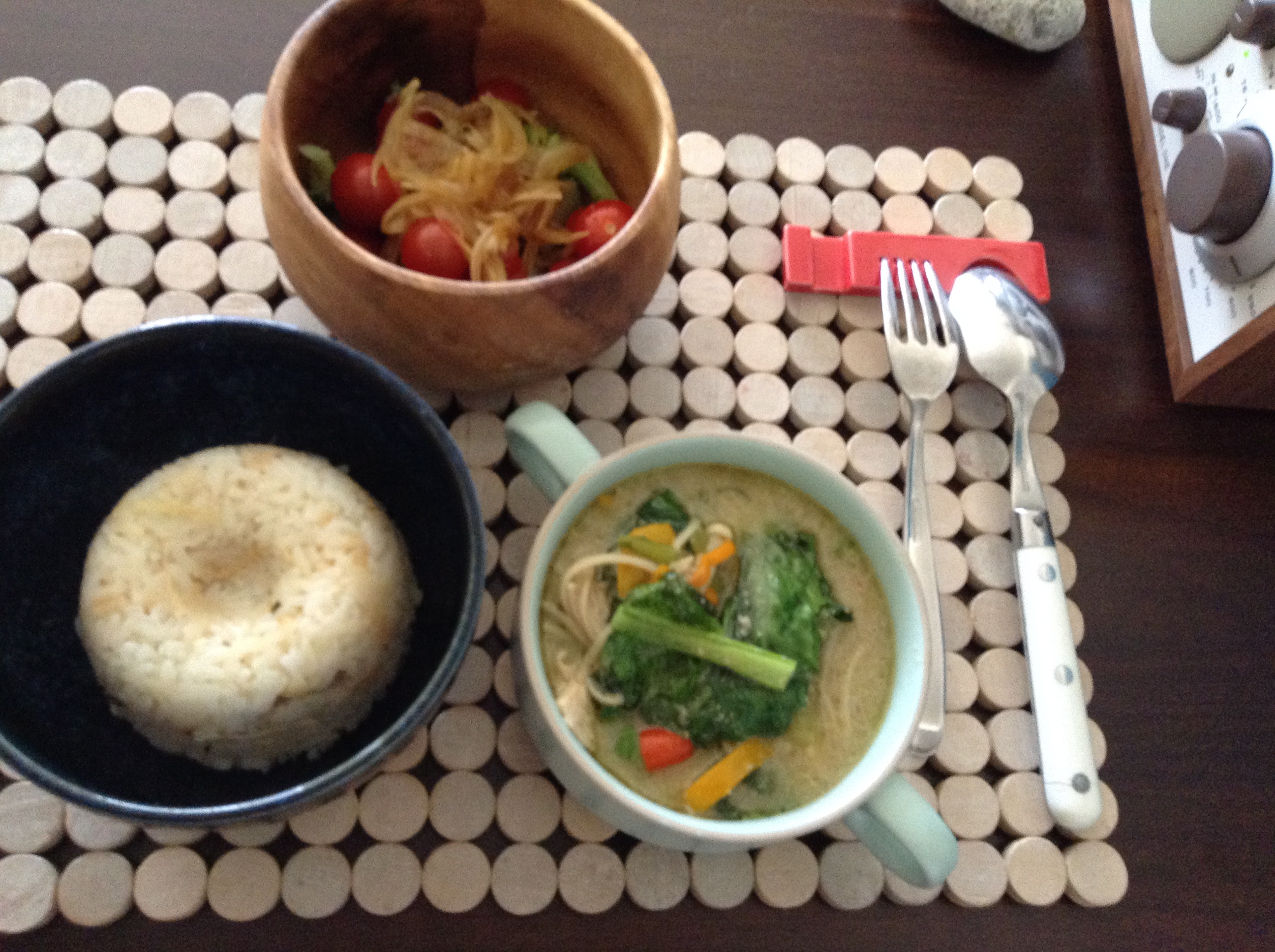 久々作ったグリーンカレーは野菜をあれこれ大量に入れすぎてわけわかんない鍋物みたいになってしまった。