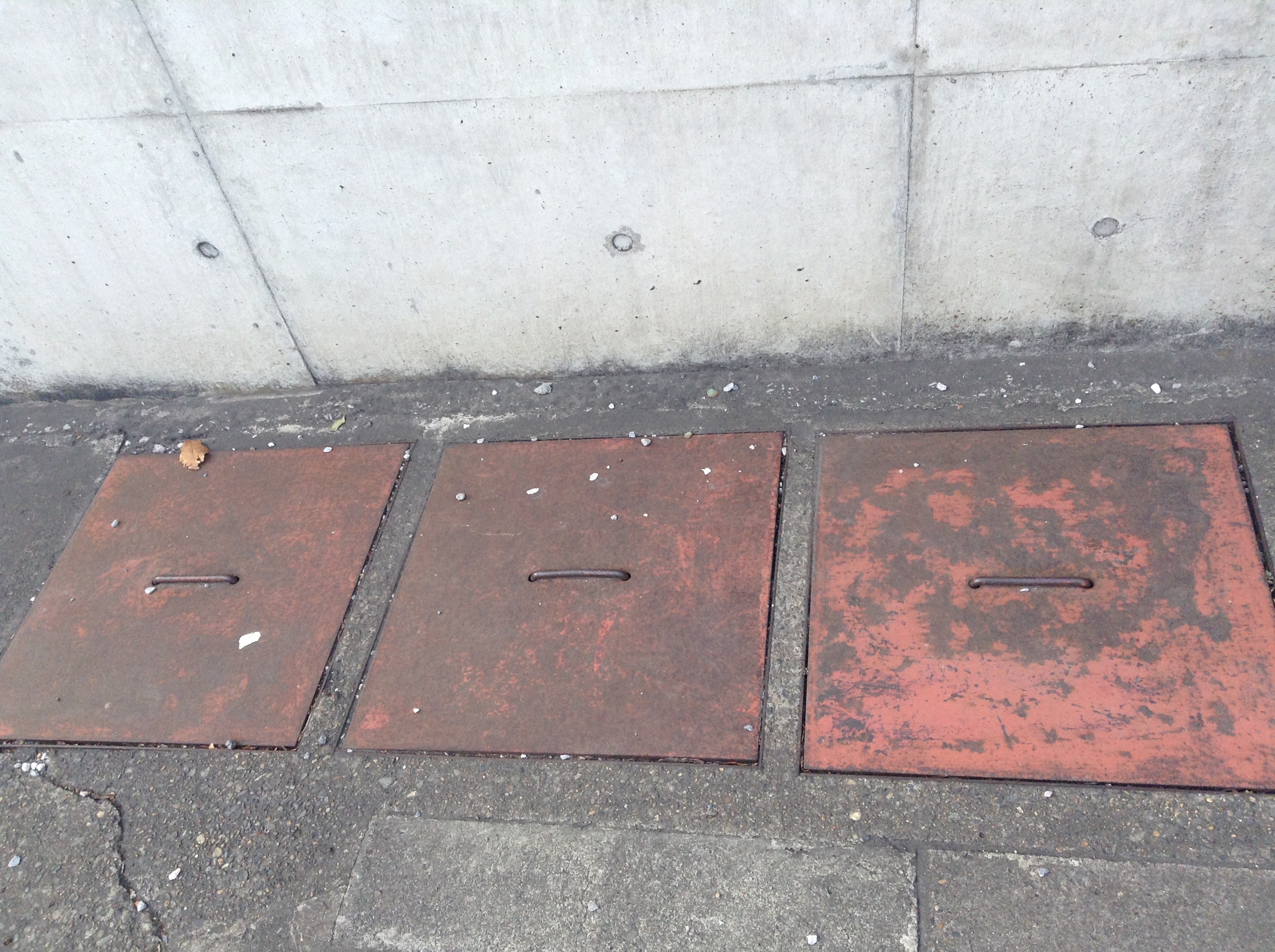 小さめのセメントの円柱みたいのを並べて植木鉢置き場にしてるところがあって、