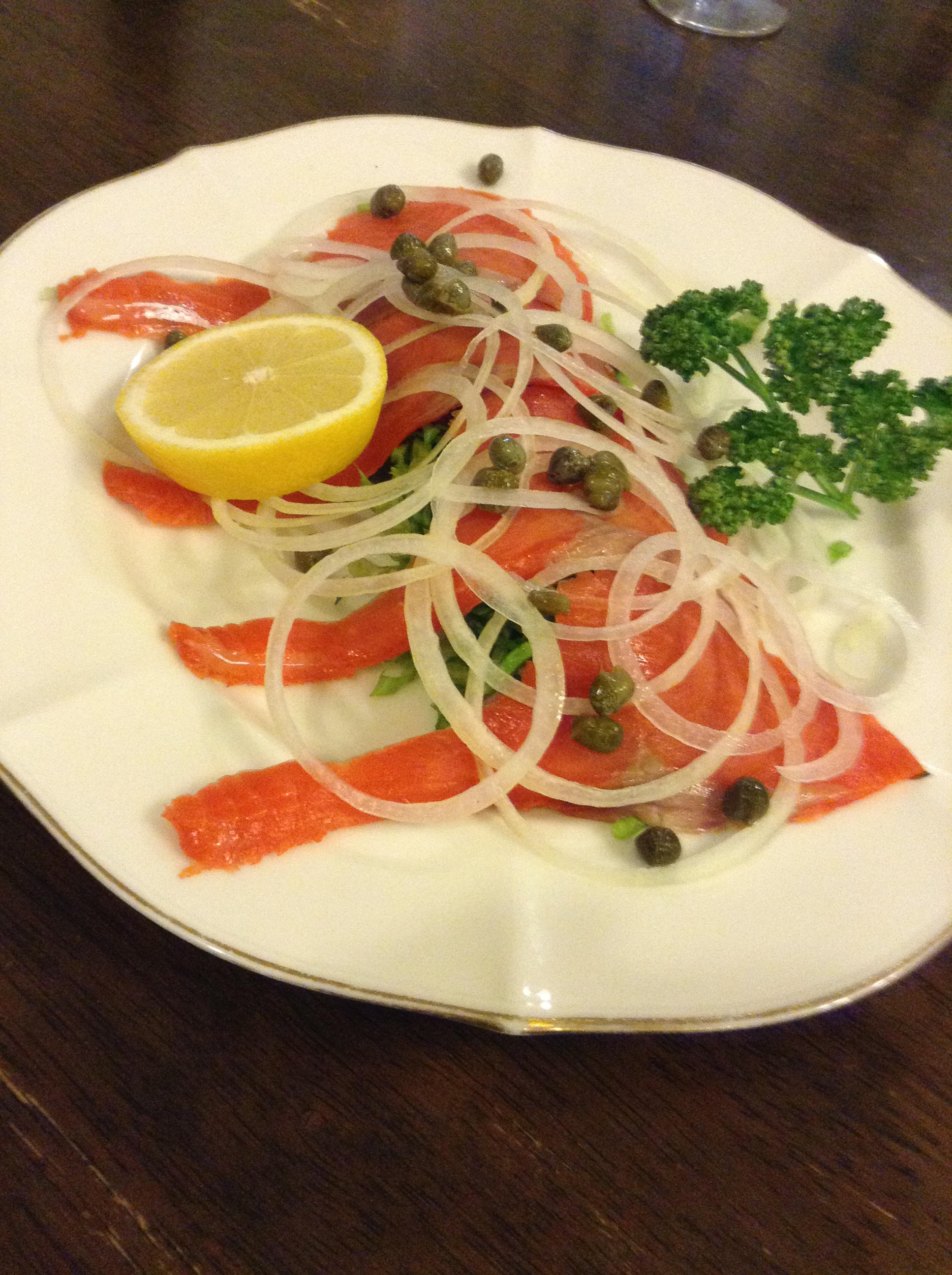 このスモークサーモンは実家を思い出す盛りつけだな〜 ケイパー大好き