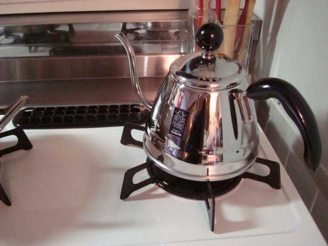 ホーローケトルにしようかと思ってたけど、店で実物みたら、うちに置くには甘すぎる感じだったんで