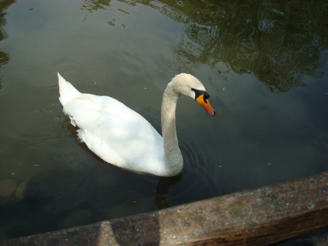 京都競馬場からやってきたという白鳥くんも健在。食物を期待して寄って来てるところ