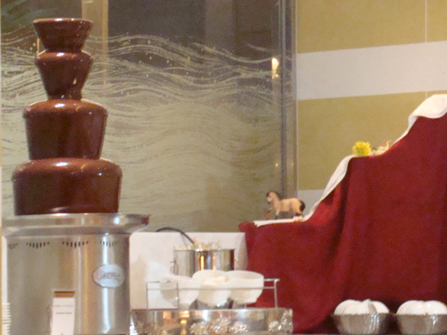 チョコレートファウンテンの近くに何故か馬が・・・・
