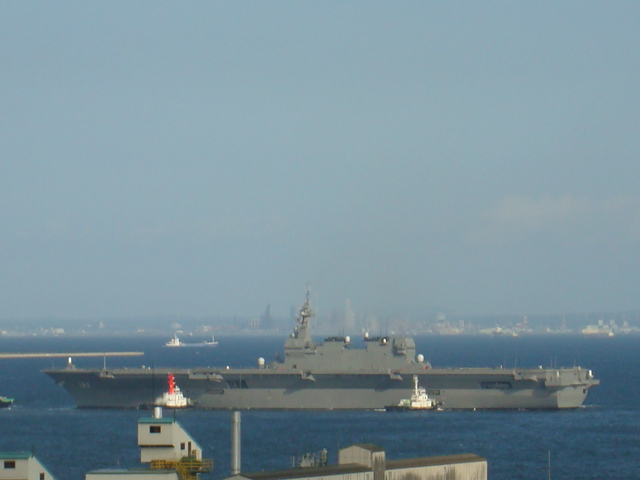 このグレーの船来るの初めて見た。メンテナンスかな? 造船所の方へ向かったもよう