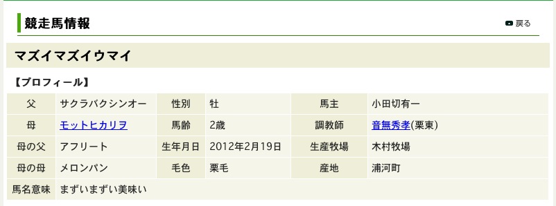 さて、本日またこんな名前の馬が新馬戦に出走していた(1着)