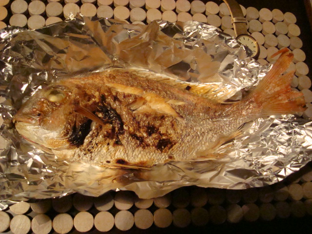 こないだSさんちから正月のごちそう巨大エビとタイの塩焼きをいただいたので、
