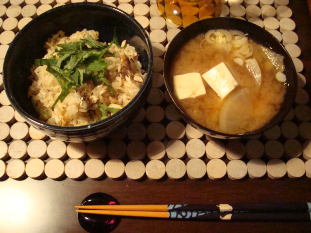 ひととおりつまんだ後、残りの鯛は鯛飯に、海老の殻で味噌汁作ってみた。