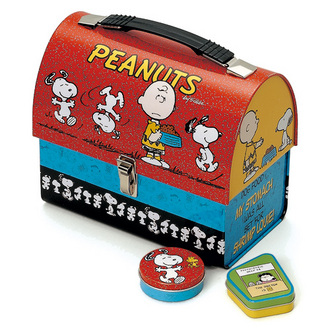 スヌーピーのブリキのランチボックス。これと同じ形で星条旗柄のを持ってました。