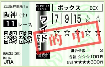本日の当たり馬券 久々にワイドとか