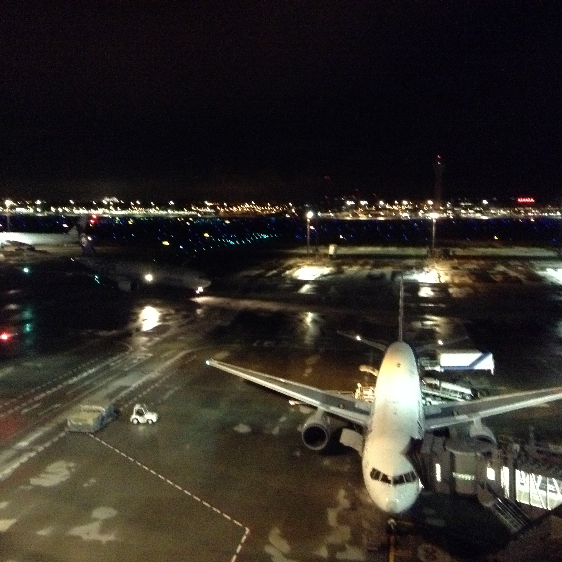 夜になってからも最高! 昼間の雨で濡れた滑走路がまたいい味だしてます