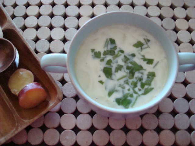 この写真じゃわかんないけど、じゃがいもの中に一つ変わったルックスのがあったのを切ってみたら、