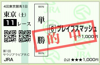 や〜やっぱ、一桁配当といえども4番人気くらいの単勝をすかっと当てると気分も上々ですな!![]()