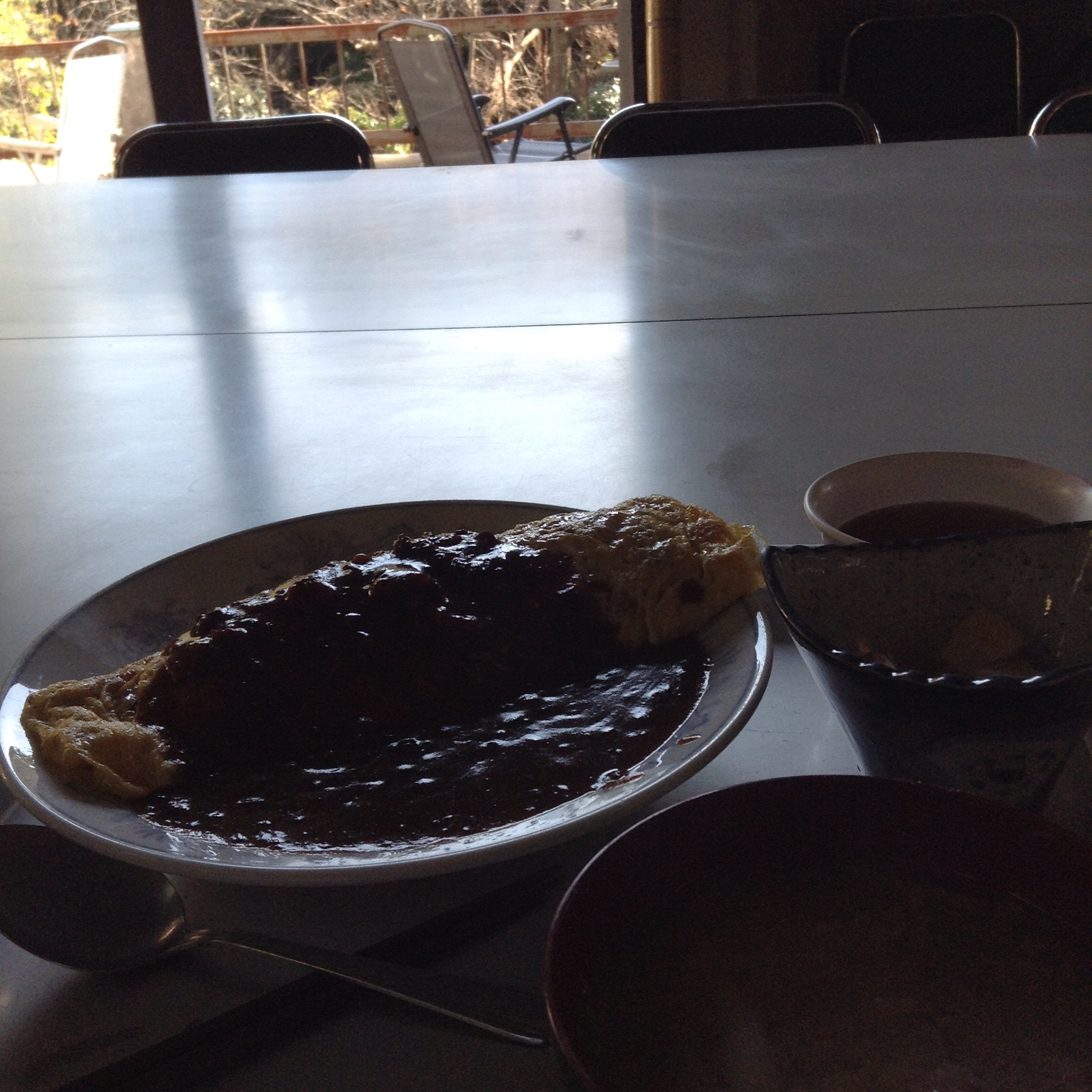 逆光すぎてわけわかんないけど今日はオムハヤシ。