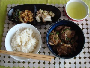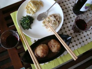持ち寄っていただいたもの:春菊のごまあえ、新じゃがチーズやき