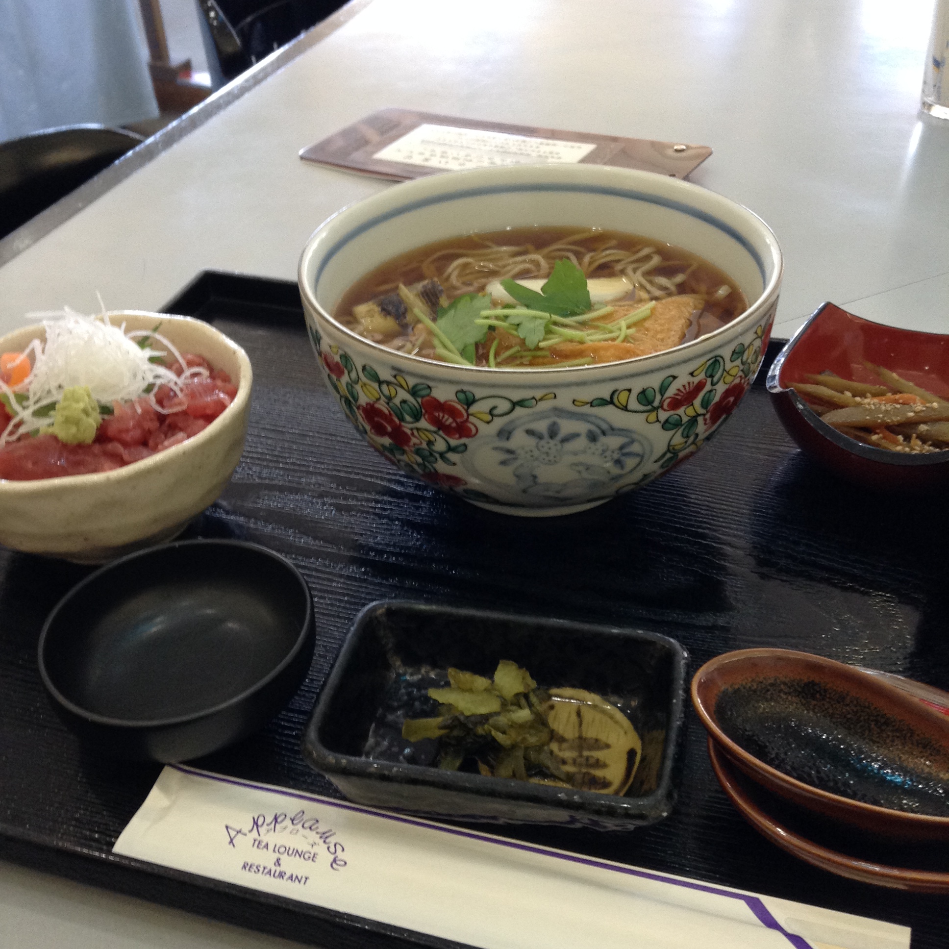 先週のランチは公民館にて、きつねそばとマグロ丼セット