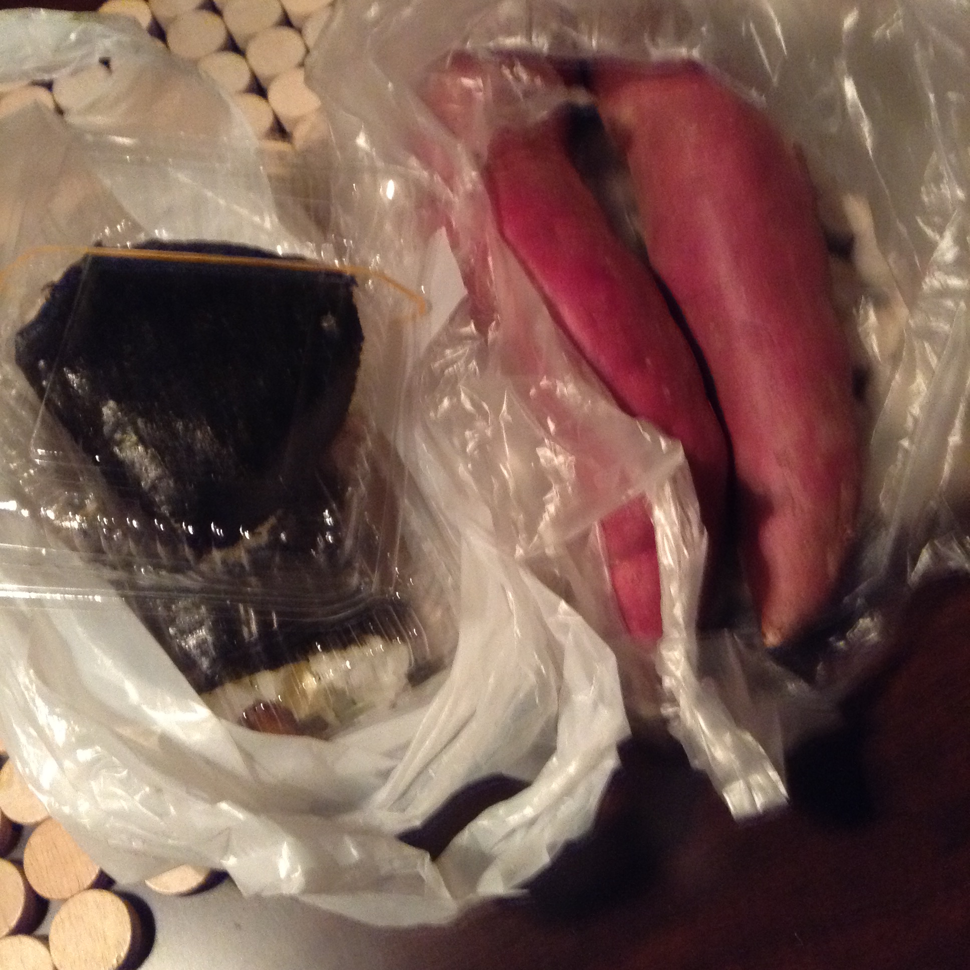 左は例の巻き寿司店で今日は総菜系のと葉とうがらしおにぎり。もう既に完食・・![]()
