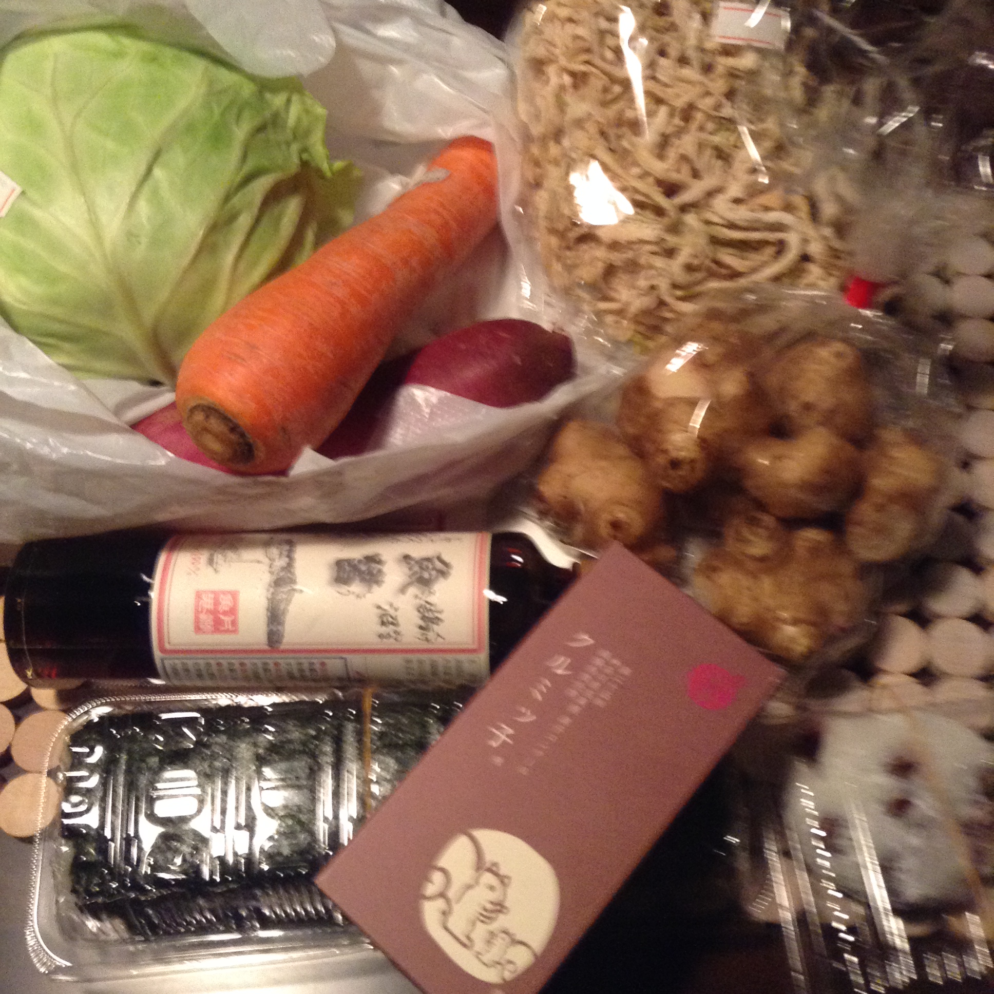 野菜色々、巻き寿司、豆大福、ご当地ナンプラー、くるみっこ