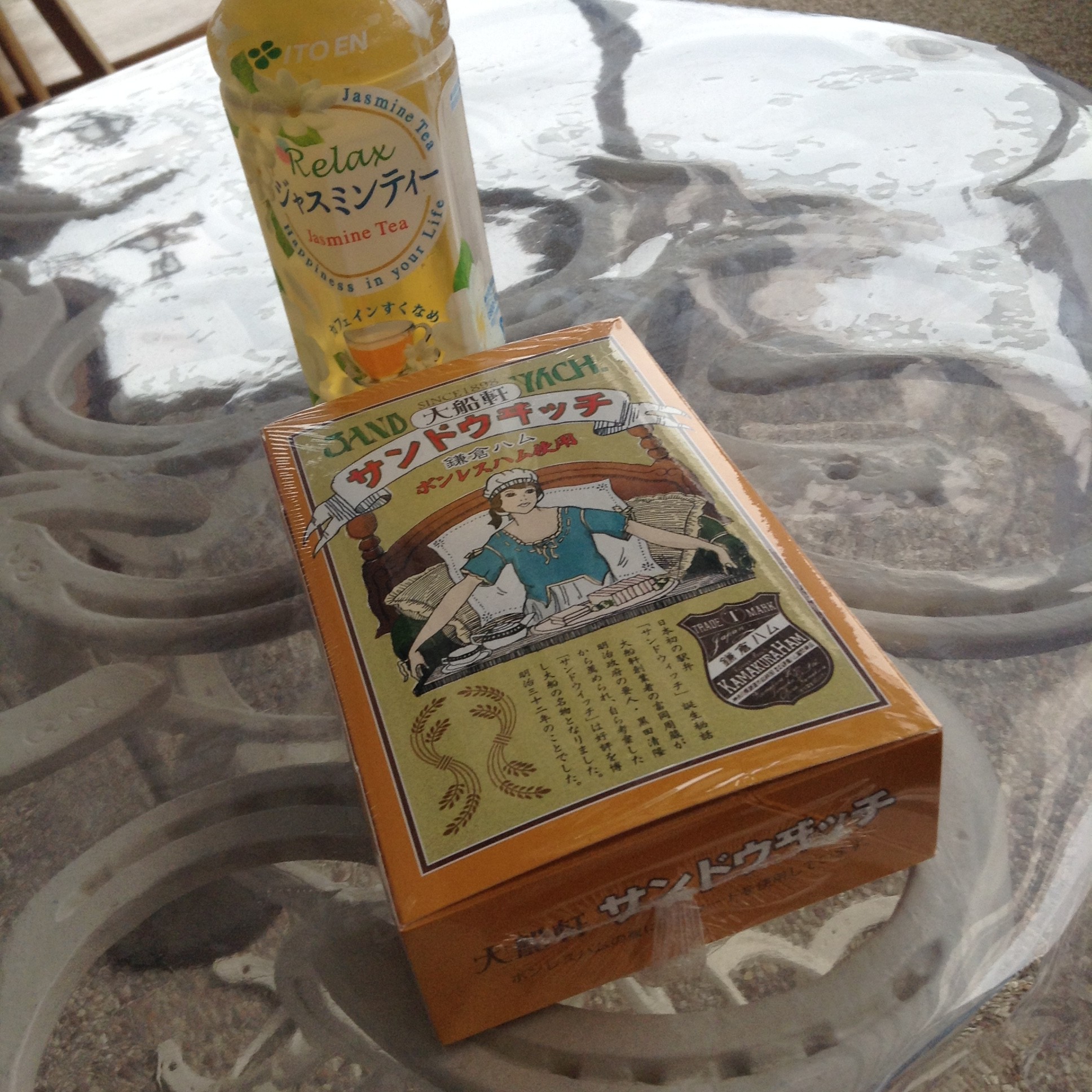 馬蹄テーブルでサンドイッチ弁当