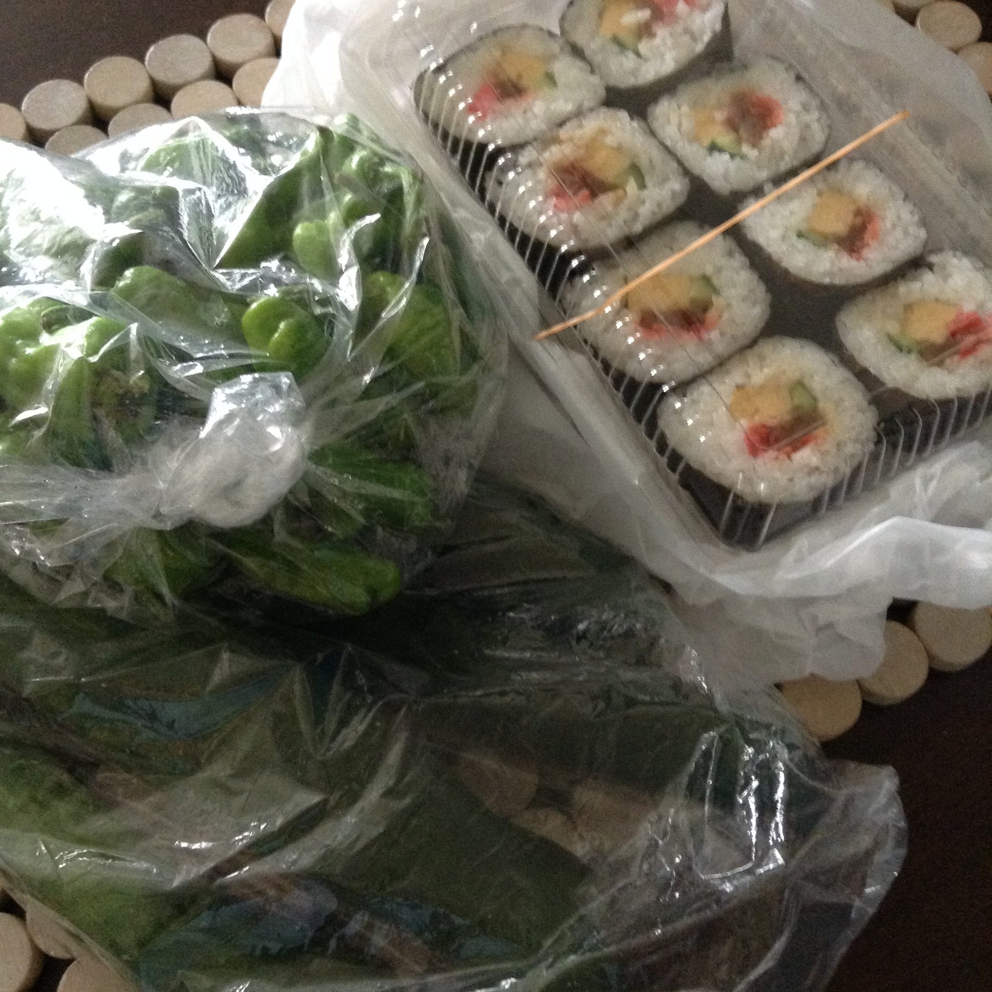 そして帰りに見つけた渋いおにぎり巻き寿司店でどうしてもがまんできず太巻き購入、、