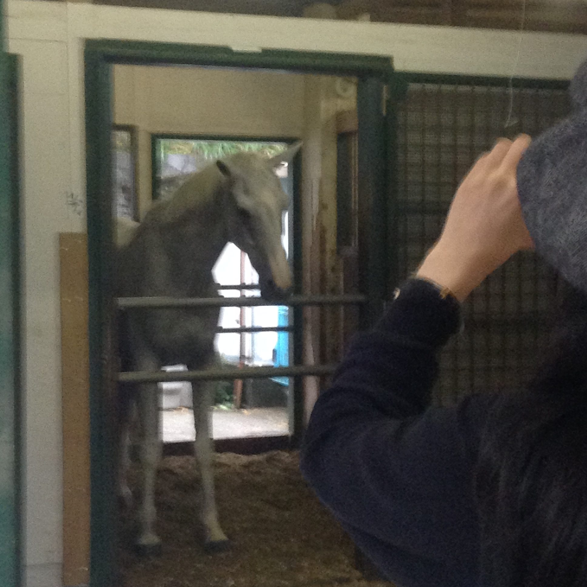祝日とは思えない閑散とした雰囲気の中、もう馬に会うのはあきらめたほうがよいかな〜と思ってたら、、