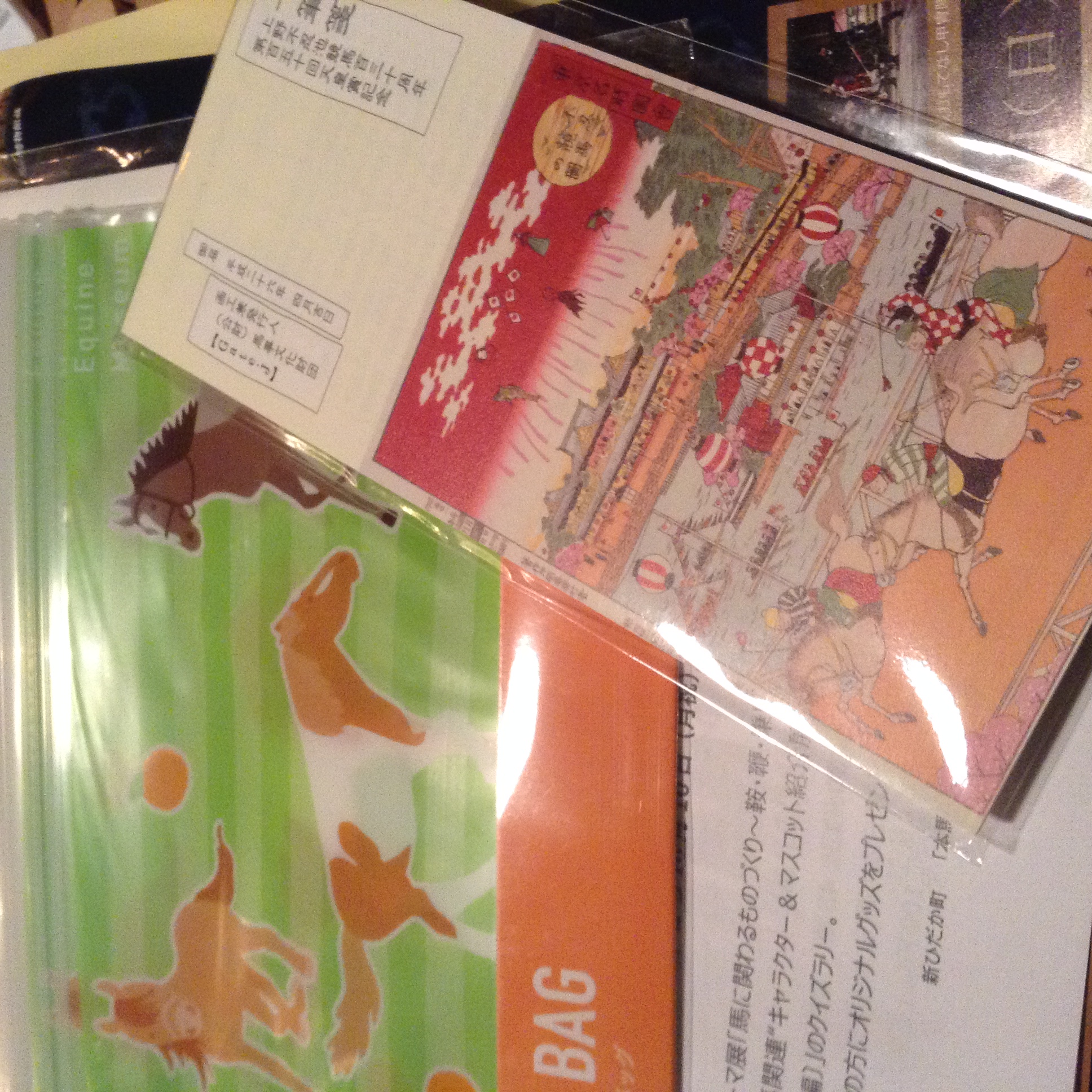 来館したときにもらった馬のジプロックと、クイズラリーでもらった一筆せん。
