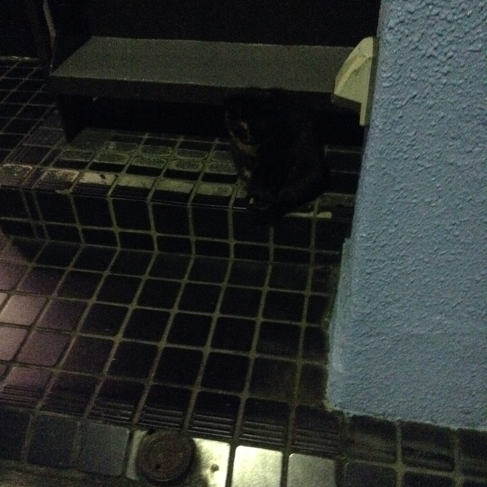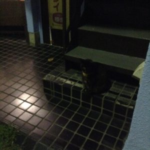 ここはいまどき珍しいロック喫茶の入口なんだけど、なんとなく、店の通い猫ってわけでもなさそう。